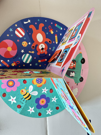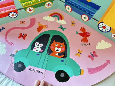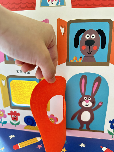 처음에 저 책을 봤을 때 옆에 리본은 책을 이쁘게 보이기 위해서 있는 건가 했는데, 알고보니 책을 활짝 펼친 다음에 저 리본끈으로 묶어주면 입체놀이책으로 변신하는 것이었더라고요.