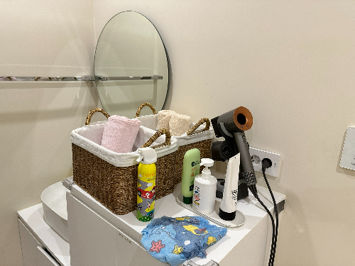 아이들을 위한 로션, 목욕가운뿐만 아니라 방수기저귀, 드라이기들이 다 구비되어 있어 좋아요.