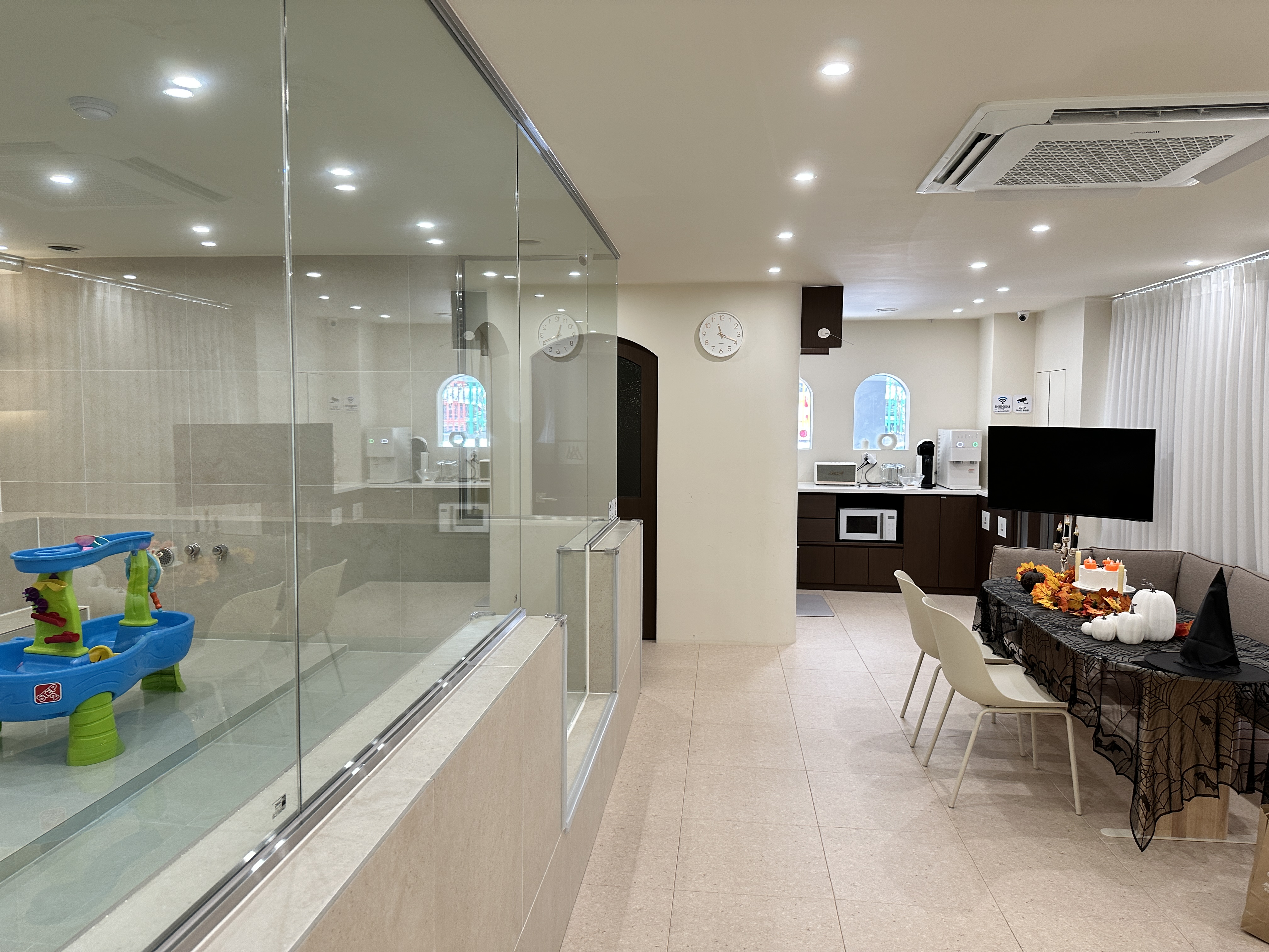 저희가 10월에 예약해서 갔는데, 넓은 탁자에는 할로윈에 맞게 소품들도 연출되어 있었답니다.
