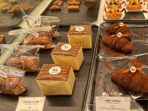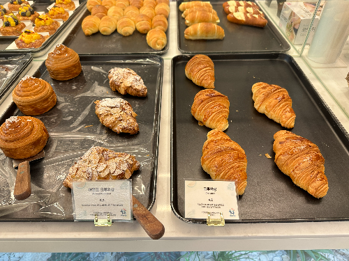 1층에서 들어오자마자 바로 오른쪽에 베이커리들이 진열되어 있어요, 담백한 빵부터 시작해서 달콤하고, 단짠단짠 하기 좋은 베이커리가 많이 진열되어 있었답니다.
