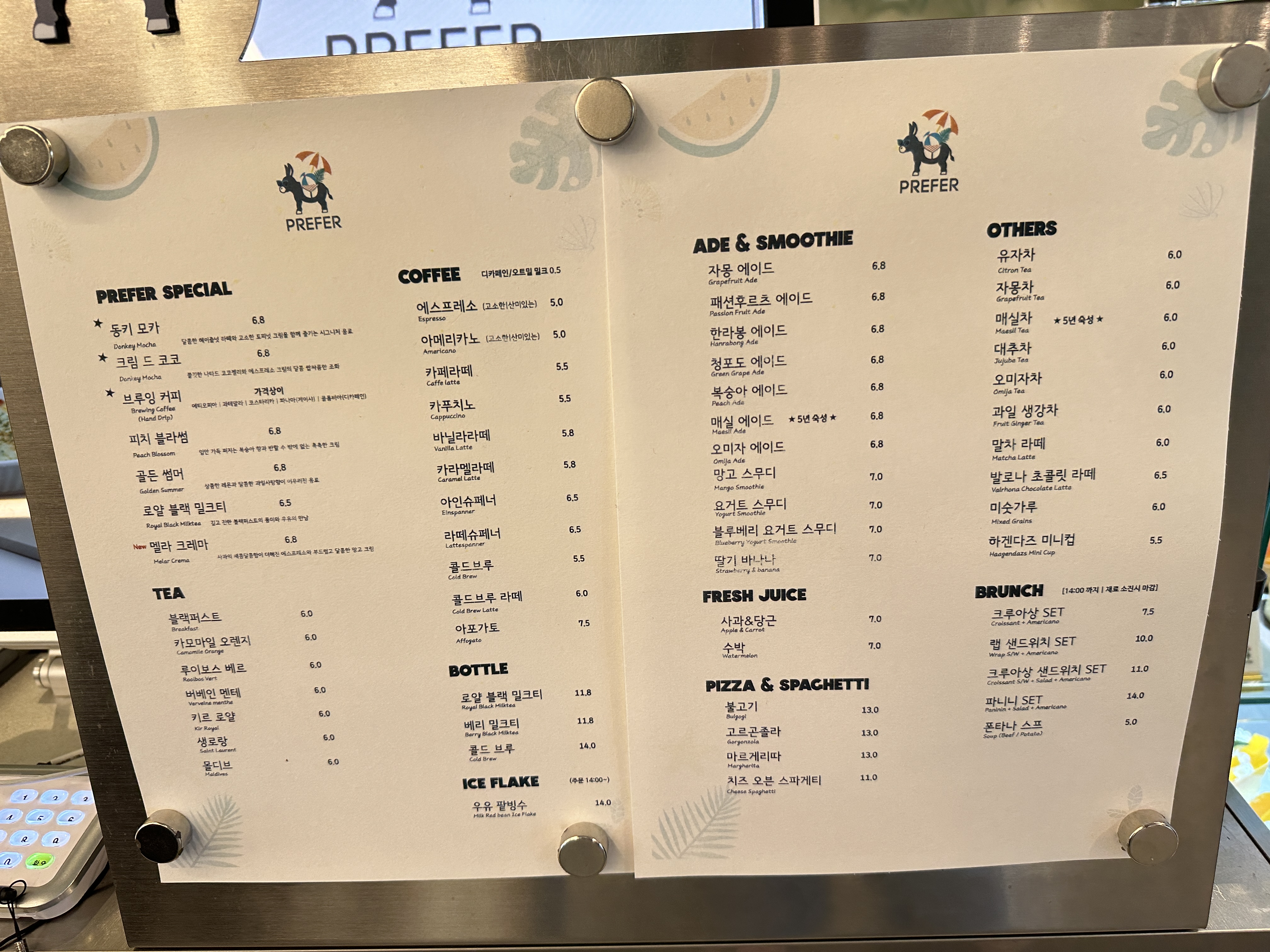 6. 프리퍼 카페 메뉴